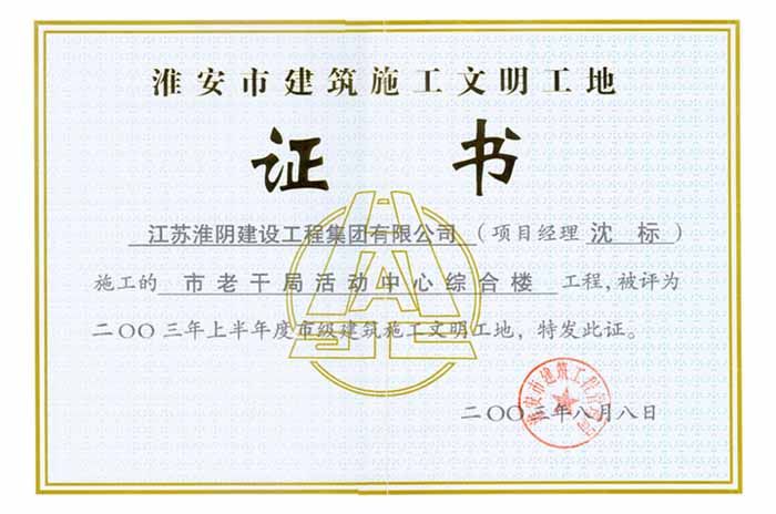 2003年市级文明工地市老干局活动中心综合楼(沈标)