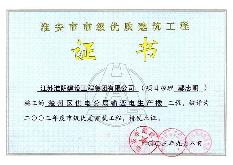 2003年市级优质工程楚州区供电分局输变电生产楼(鄢志明)