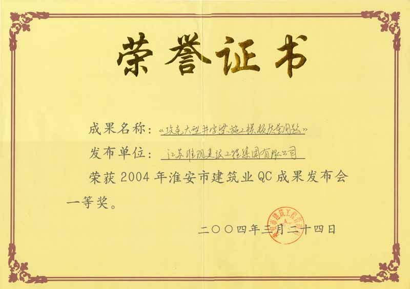 2004年市级QC攻克大型井字梁施工模板质量问题(一等奖)