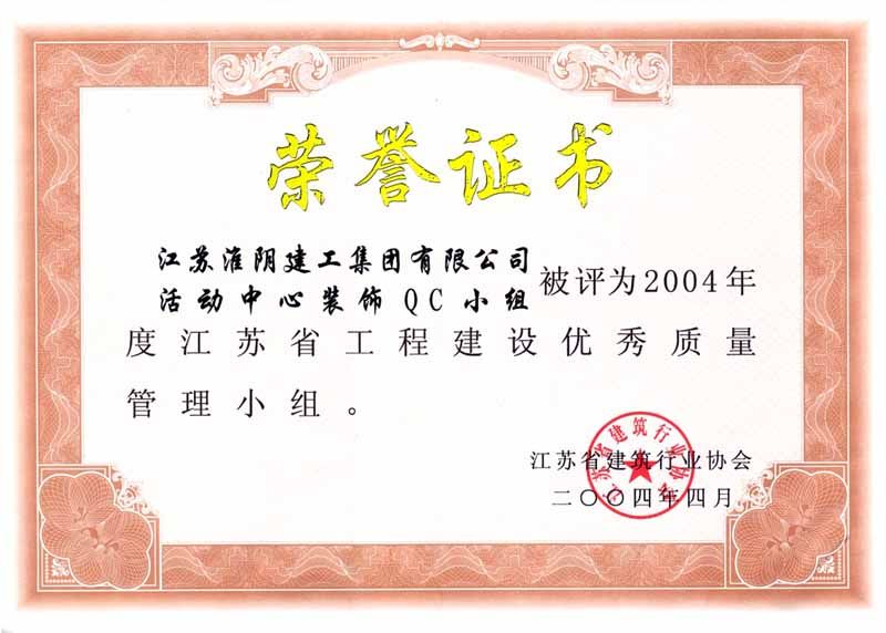 2004年市级QC老干部活动中心装饰QC小组(优秀质量管理小组