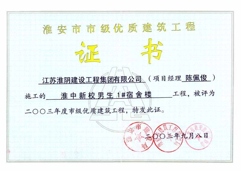 2003年市级优质工程淮中新校男生1#宿舍楼(陈佩俊)