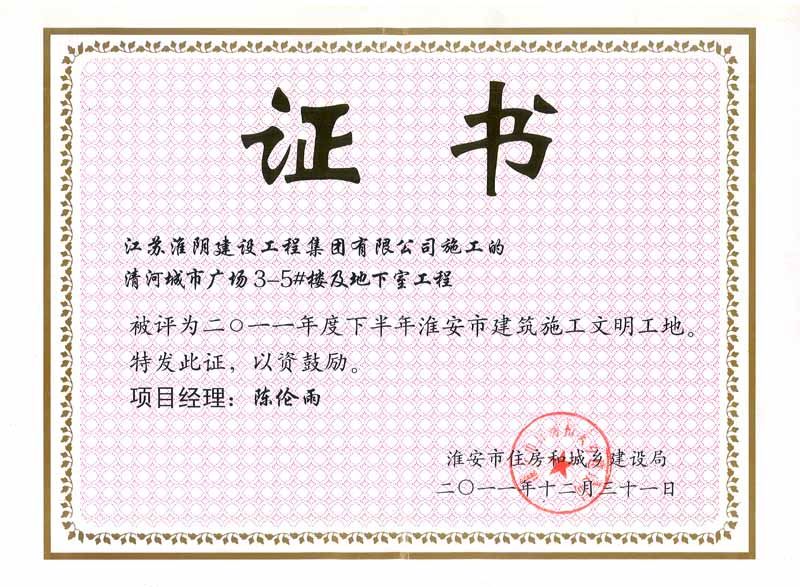 2011年文明工地清河城市广场3-5#楼及地下室工程-陈伦雨