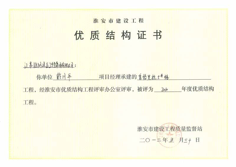 2012年市优质结构香格里拉5号楼